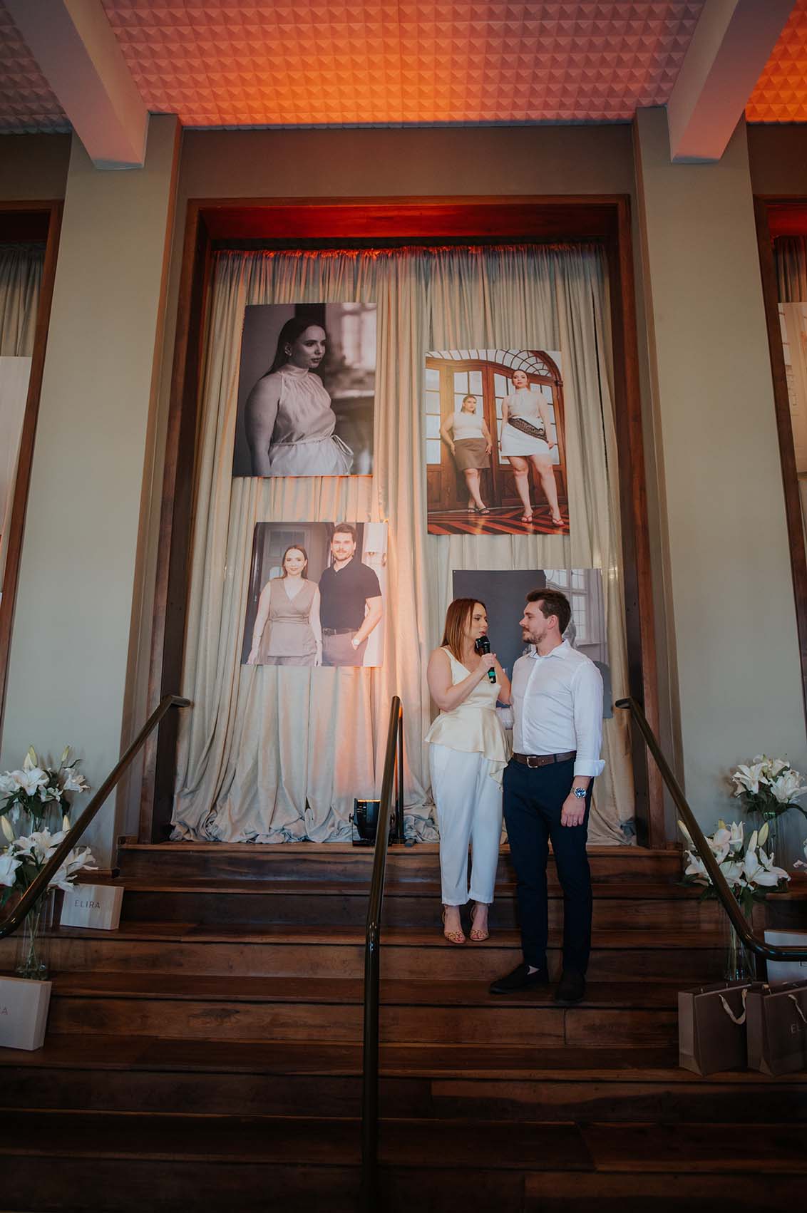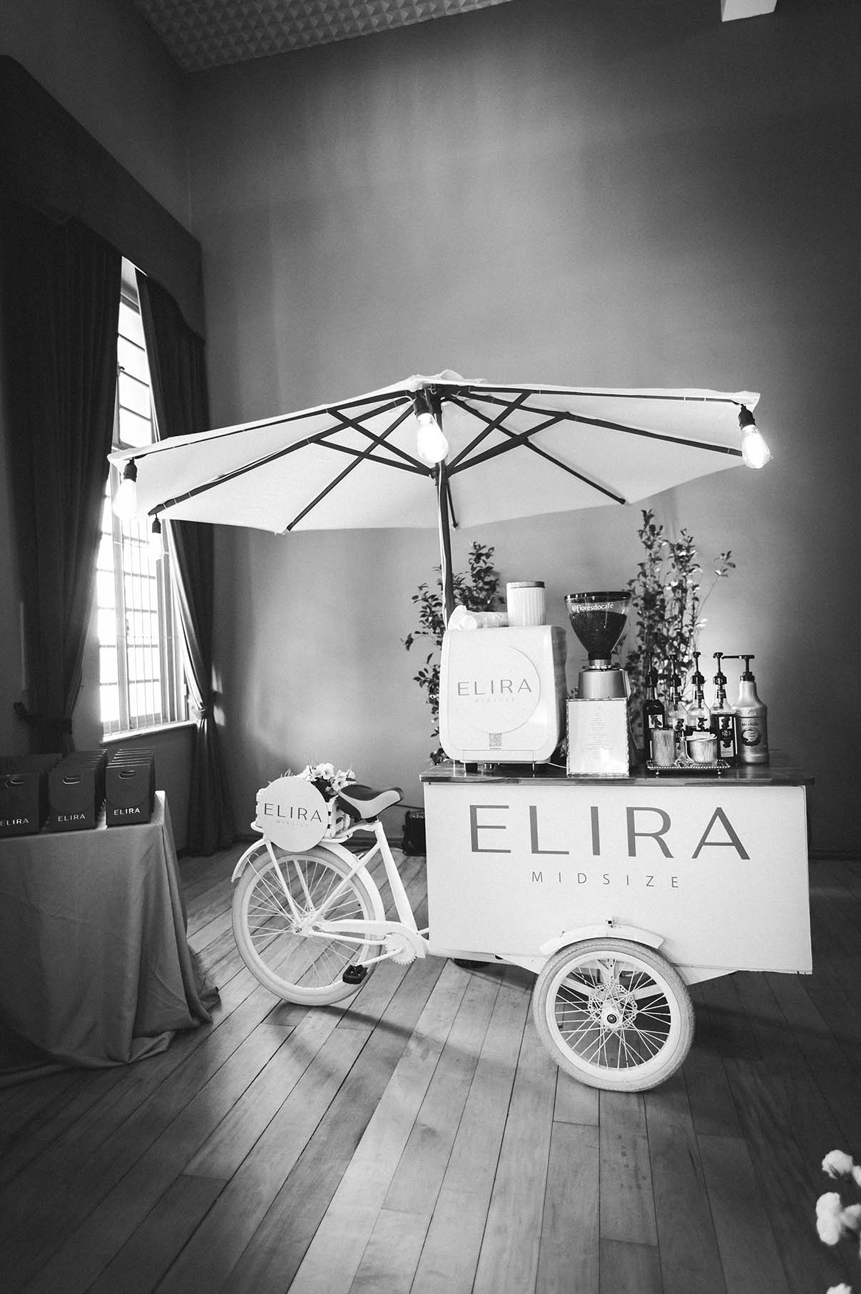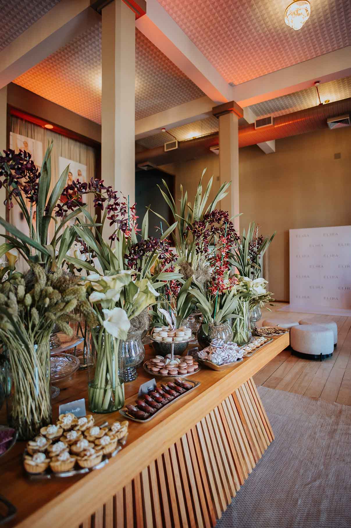 A experiência de lançamento da Elira foi concebida como uma extensão sensorial da marca. Cada elemento do evento, da ambientação ao mobiliário, dos impressos aos sabores, foi cuidadosamente planejado para refletir a identidade visual e o universo estético da Elira. A seleção de doces seguiu a cartela de cores da marca, reforçando a coerência visual por meio da gastronomia. A galeria com a primeira campanha e o carrinho de cafés personalizados funcionaram como ativações estratégicas, combinando narrativa e estímulos sensoriais para apresentar a marca de forma imersiva e memorável.